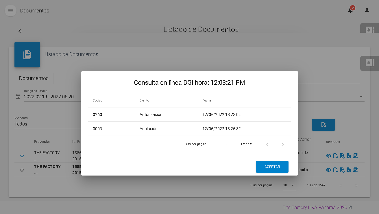 En esta ventana se visualiza el estado fiscal actual del documento.